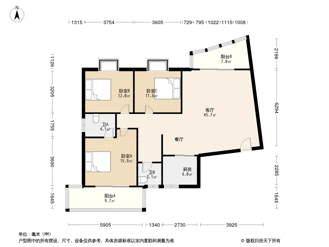 户型齐全,主打户型方正,明厨,明卫,客厅朝南,主卧朝南三居
