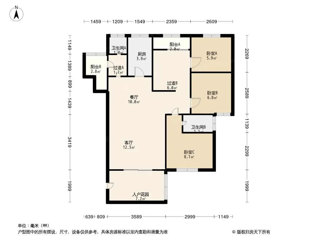 户型齐全,主打客厅朝南,双卧朝南三居
