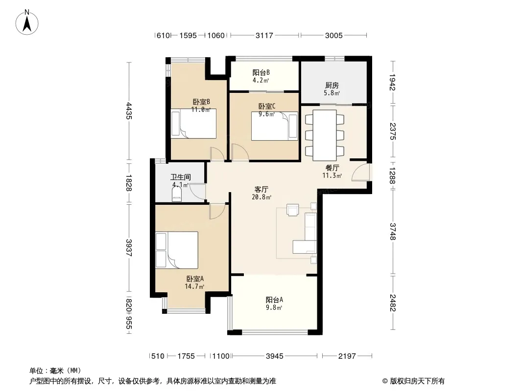 户型齐全,主打户型方正,明厨,明卫,双阳台,主卧朝南三居