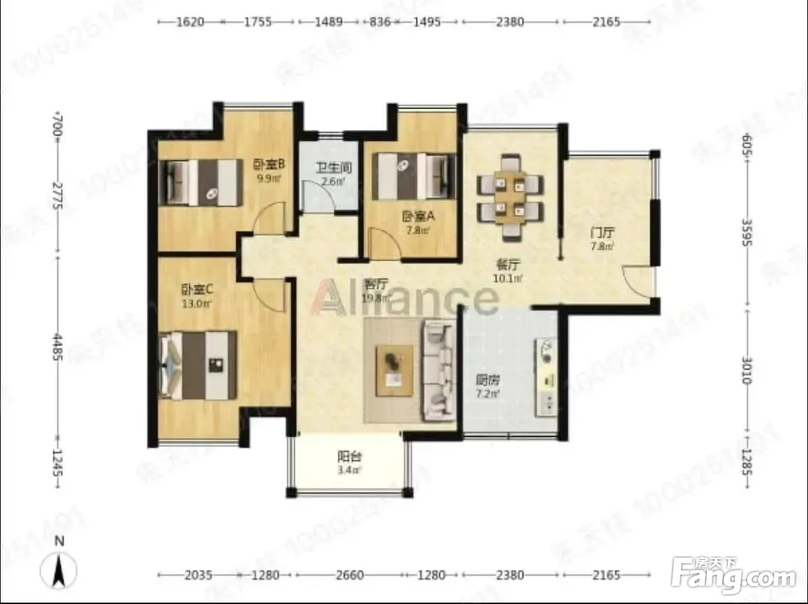 户型齐全,主打明卫,双阳台,主卧朝南三居