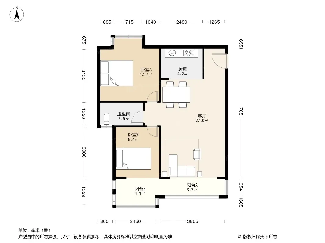 户型齐全,主打明卫,明厨,客厅朝南,双阳台二居