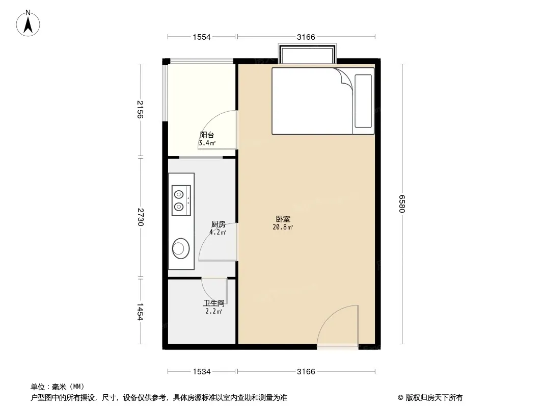圆梦康乐城 1室1厅 南