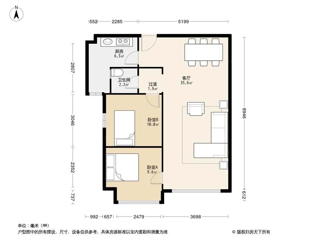 户型齐全,主打户型方正,明厨,客厅朝南二居
