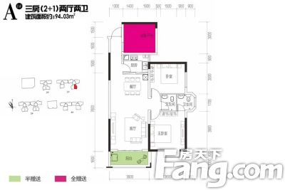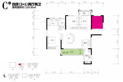 户型齐全,主打户型方正,主卧朝南,主卧带卫四居