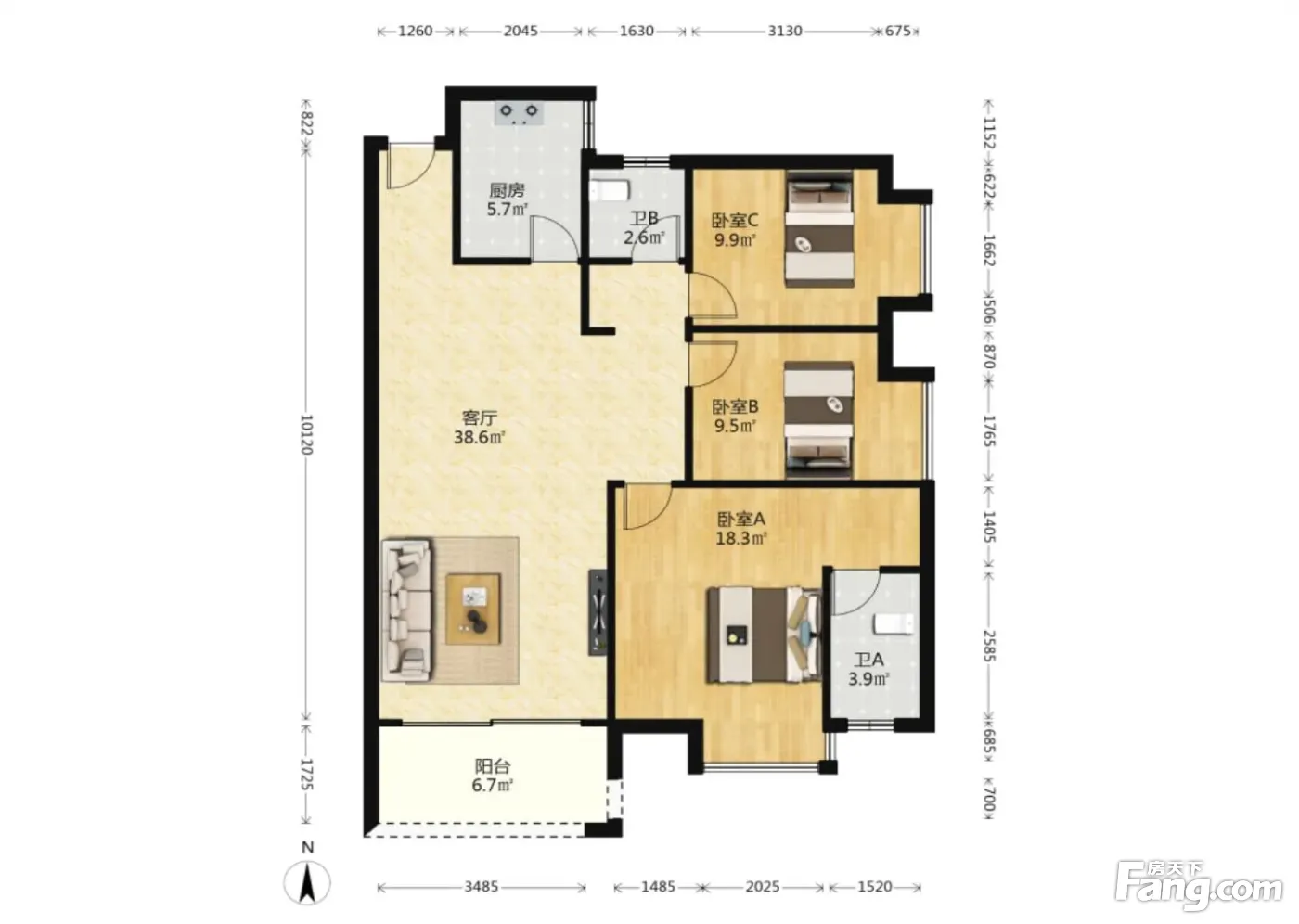 北辰三角洲C2区 3室1厅 南