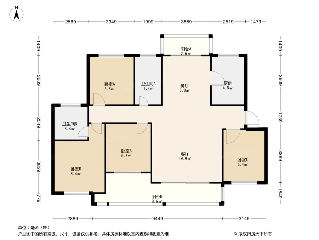 户型齐全,主打明卫,明厨,双卧朝南,主卧朝南四居