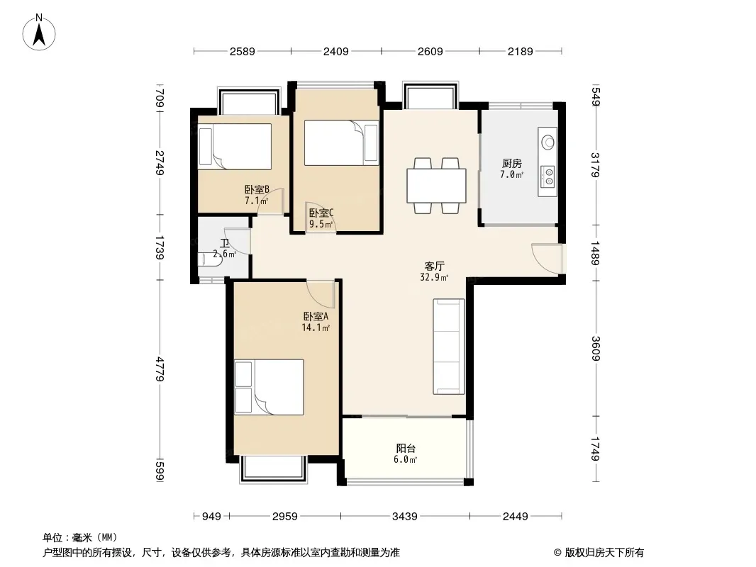 户型齐全,主打明卫,明厨三居