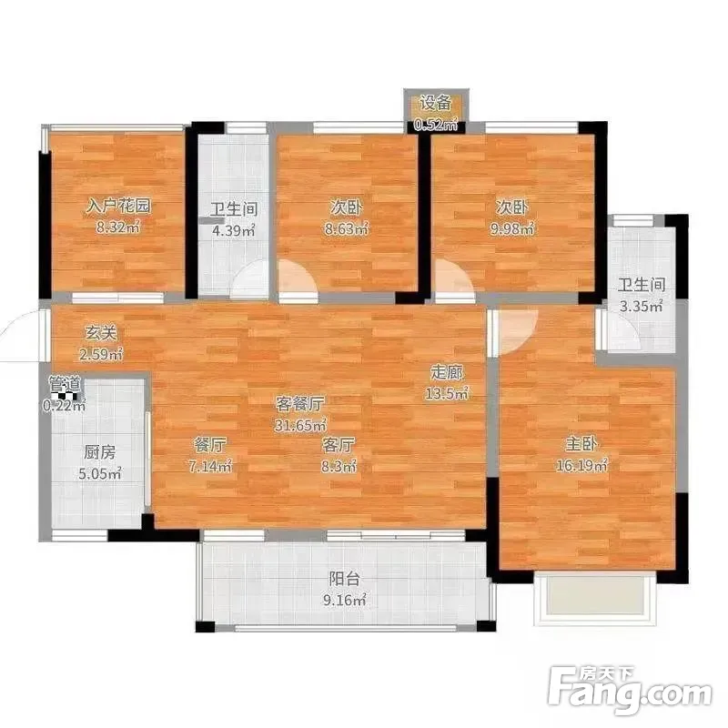 户型齐全,主打明卫,双阳台,主卧朝南三居