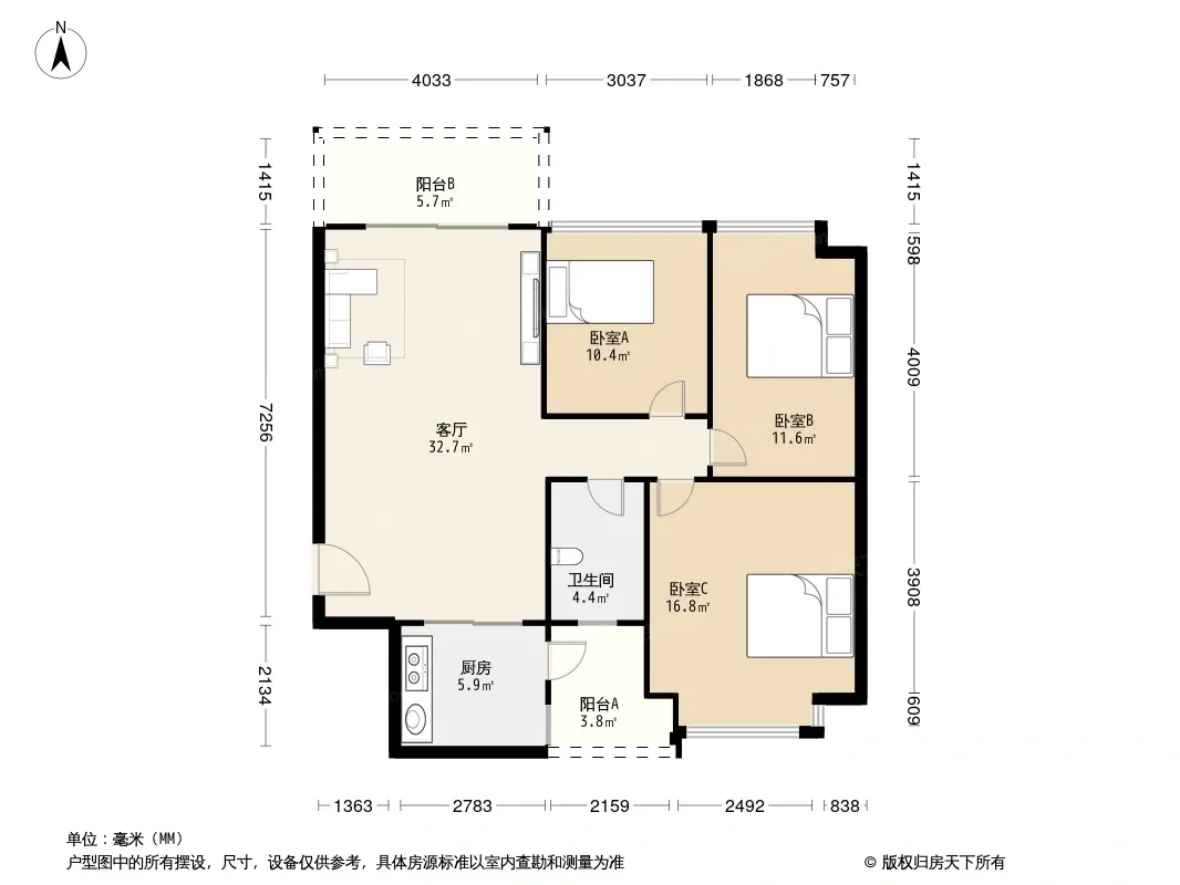 户型齐全,主打明卫,客厅朝南,双卧朝南三居