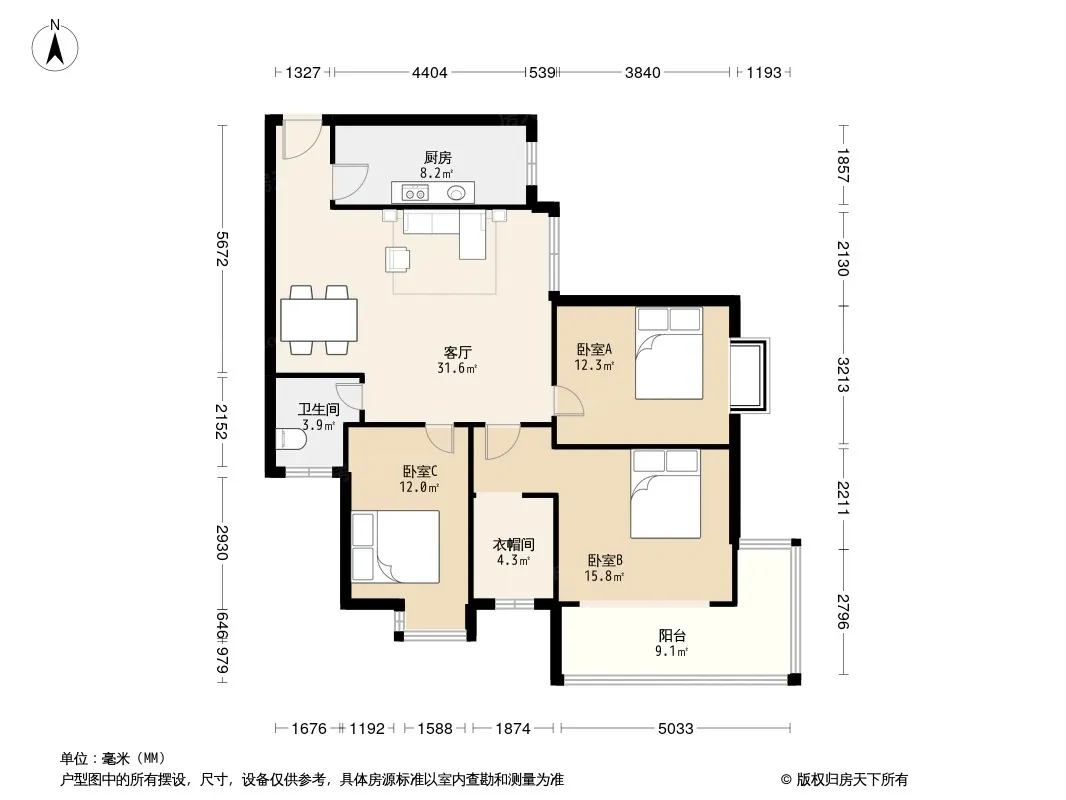 户型齐全,主打户型方正,明卫,主卧朝南三居
