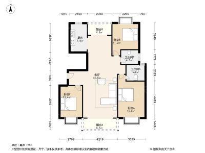 户型齐全,主打户型方正,明卫,明厨,客厅朝南,双阳台四居