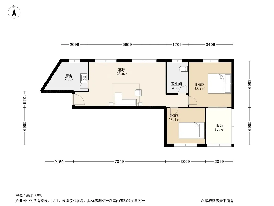 户型齐全,主打明厨,双卧朝南,主卧朝南二居