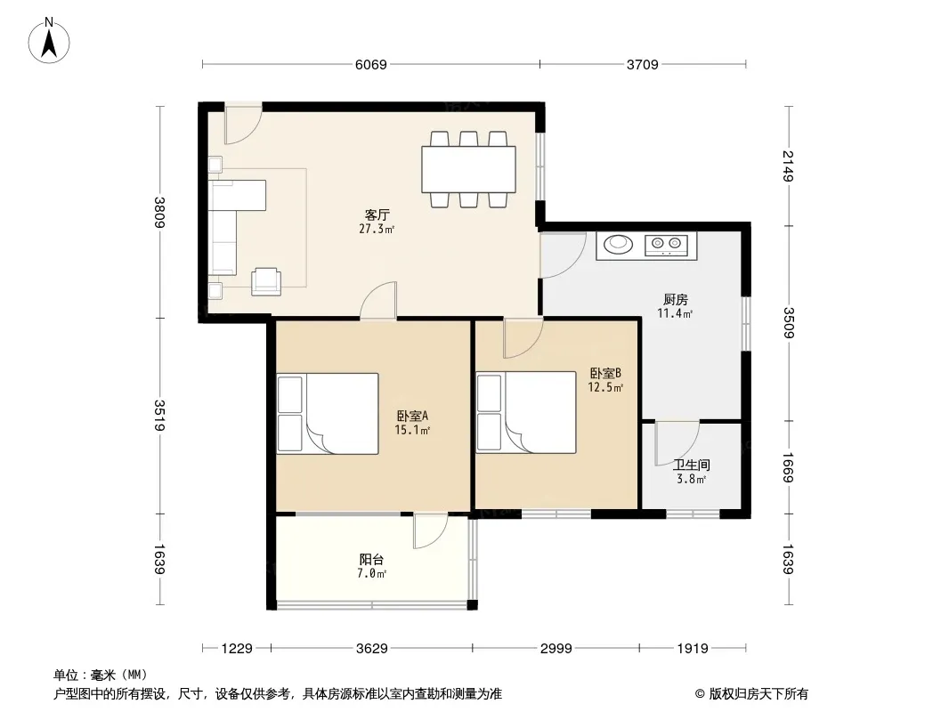 户型齐全,主打户型方正,明卫,明厨,客厅朝南,全明格局,双卧朝南二居