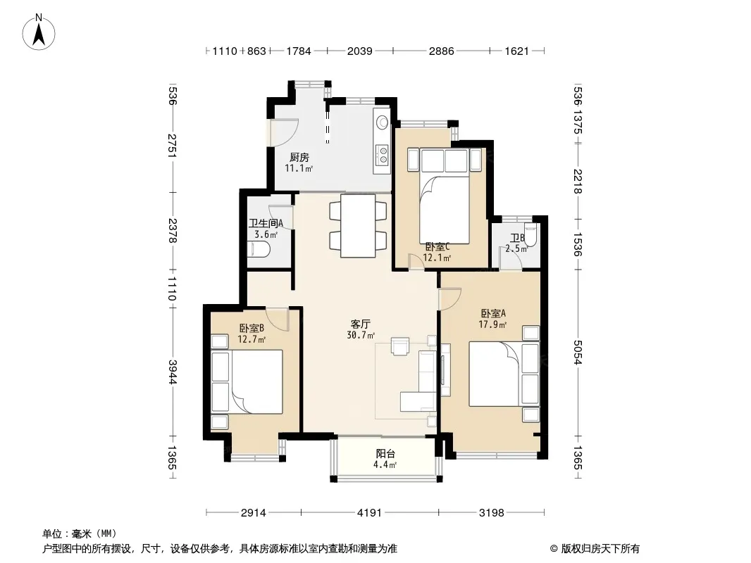 户型齐全,主打明卫三居