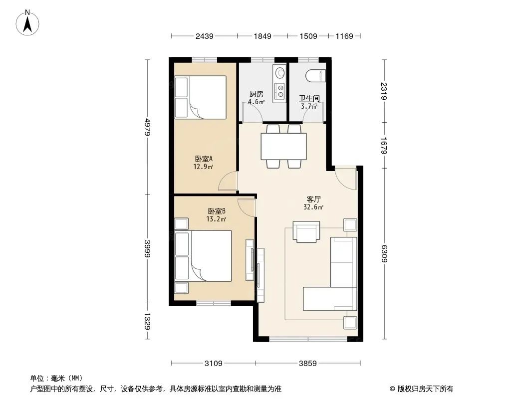 户型齐全,主打户型方正,明卫,明厨,客厅朝南,全明格局,主卧朝南二居