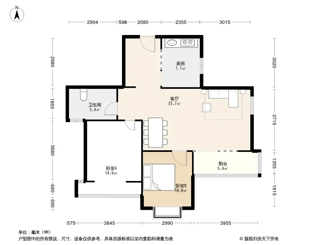 户型齐全,主打明厨,明卫,客厅朝南,全明格局二居