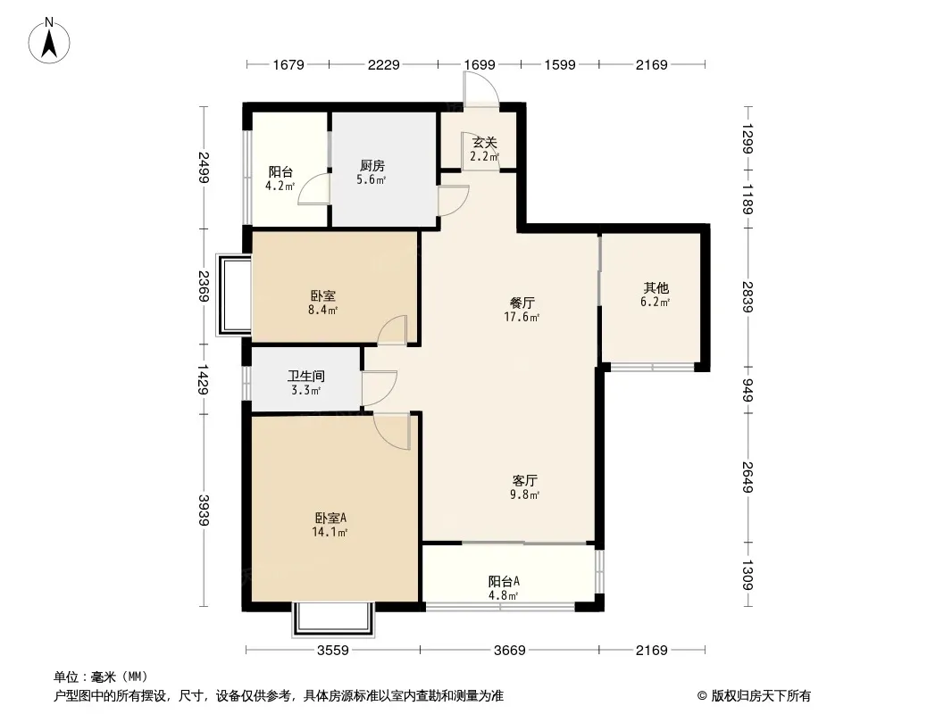 户型齐全,主打户型方正,采光充足二居