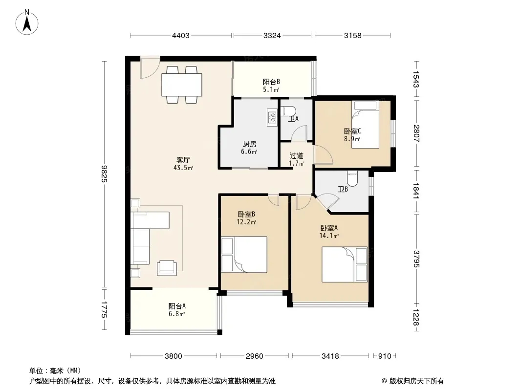 户型齐全,主打户型方正,明卫,明厨,客厅朝南,全明格局,主卧朝南三居