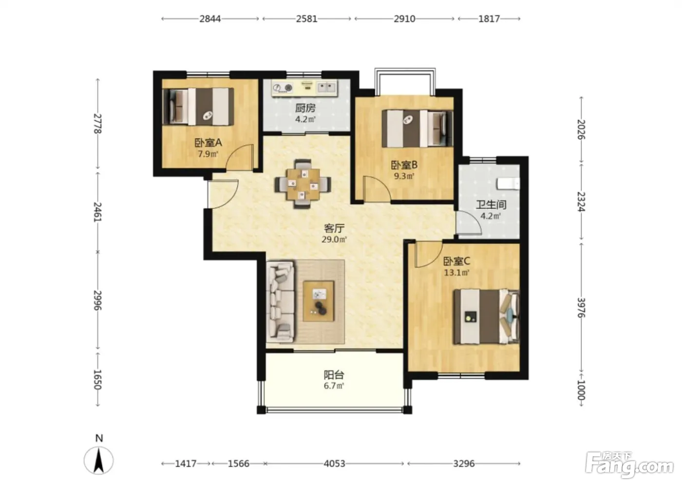 户型齐全,主打户型方正,主卧朝南三居
