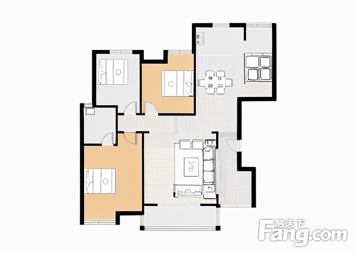 户型齐全,主打户型方正,明厨,明卫,客厅朝南,全明格局,双阳台,主卧朝南二居