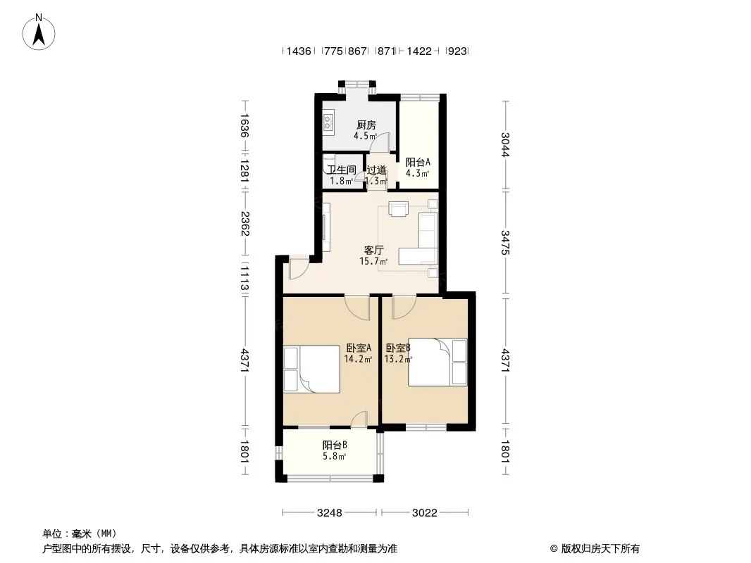 户型齐全,主打户型方正,明厨,双阳台,双卧朝南,主卧朝南二居