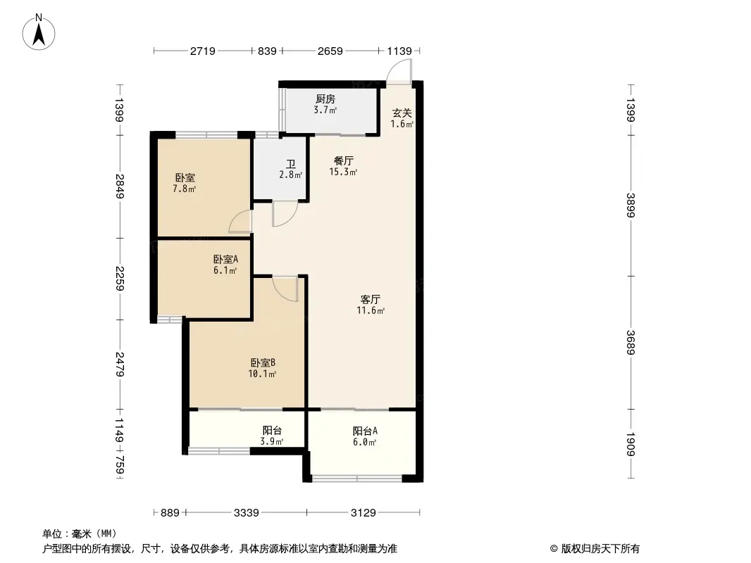户型齐全,主打客厅朝南,卧室带阳台三居