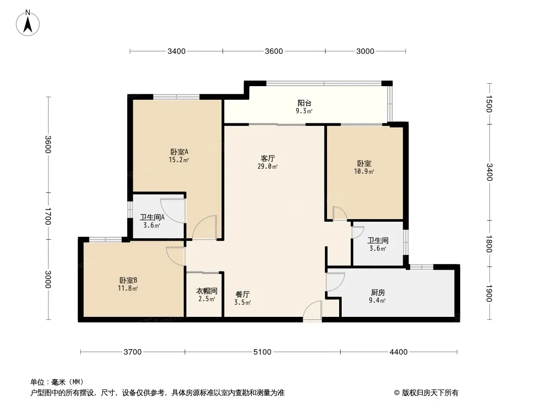 户型齐全,主打南北通透,主卧带卫,带衣帽间三居