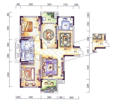 户型齐全,主打主卧带卫,户型方正三居