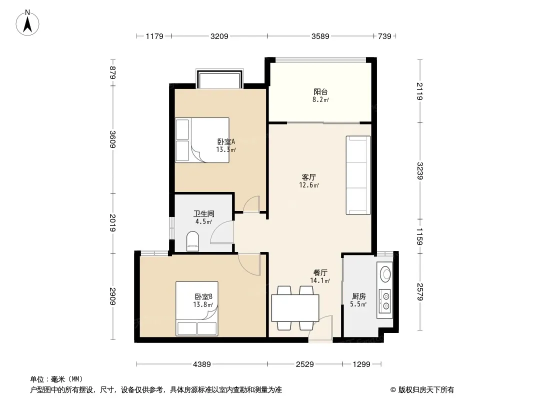 紫晶城三期 2室2厅 北