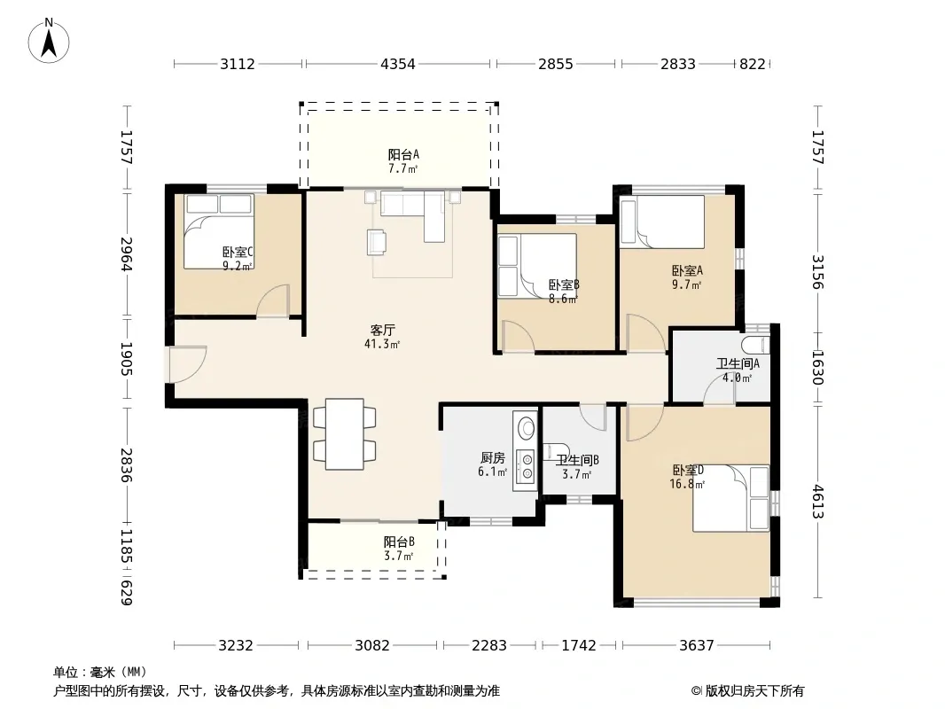 户型齐全,主打南北通透,户型方正三居