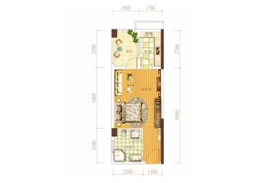 东业上城嘉苑 1室1厅 东南