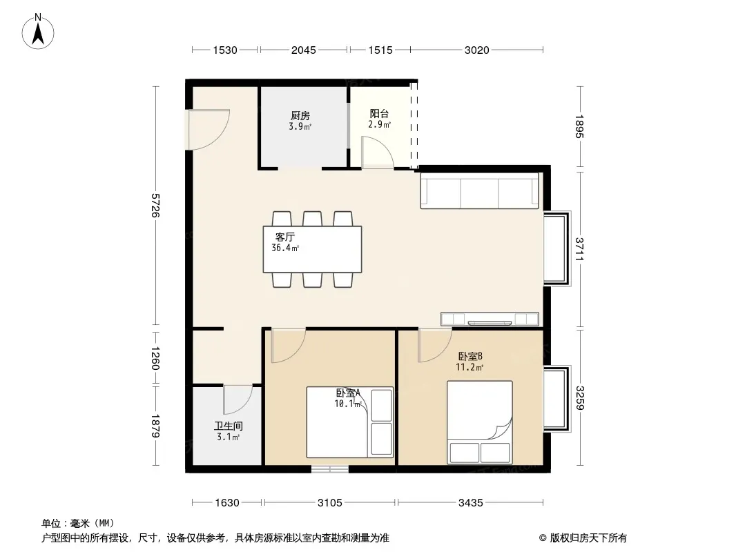 户型齐全,主打户型方正,明厨,明卫,客厅朝南,全明格局二居