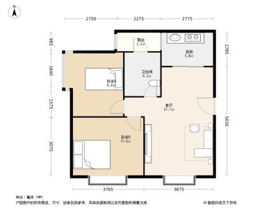 晶华美地 2室2厅 南 北
