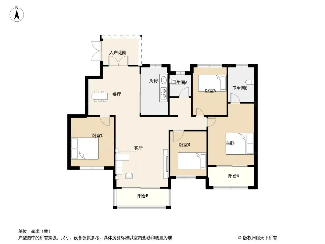 户型齐全,主打主卧带卫,卧室带阳台四居