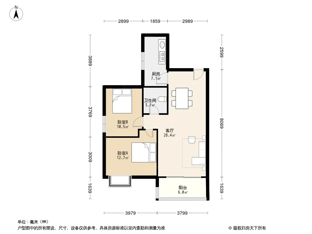 户型齐全,主打明卫,双阳台,双卧朝南三居