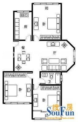 户型齐全,主打户型方正,明卫,明厨,客厅朝南,主卧朝南三居
