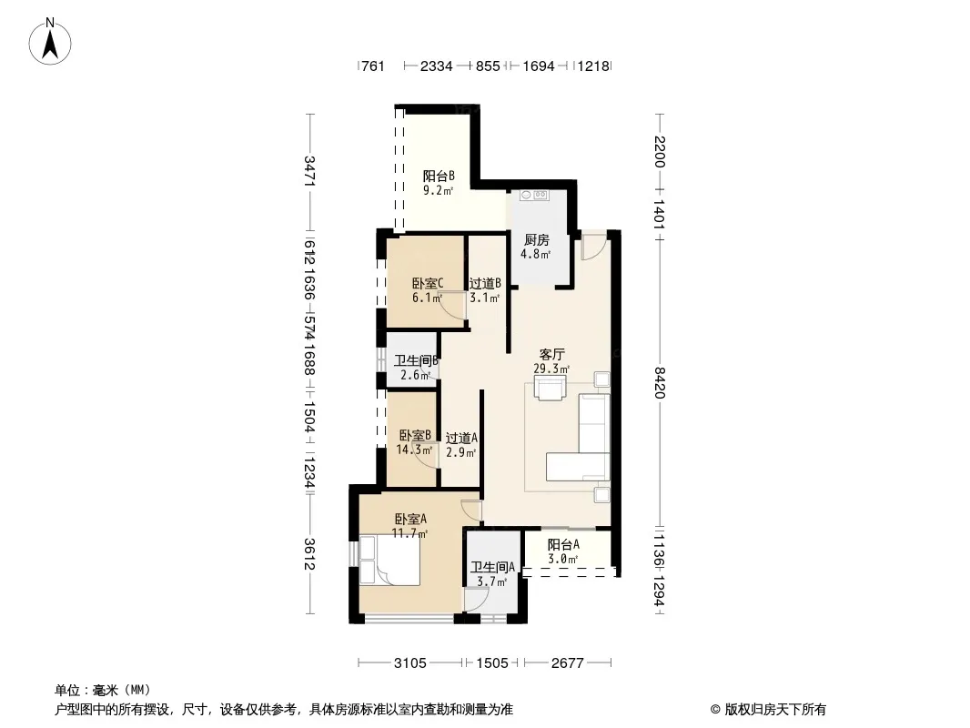 合能雨花公馆 3室2厅 南