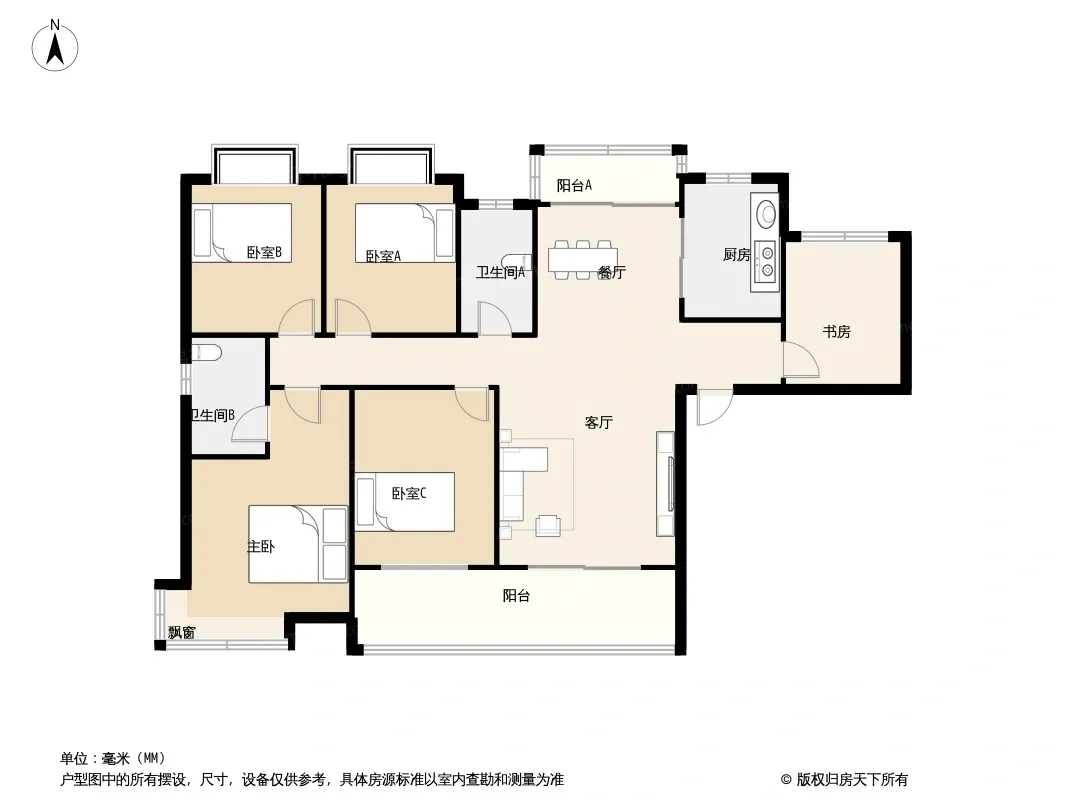 户型齐全,主打南北通透,全明格局四居