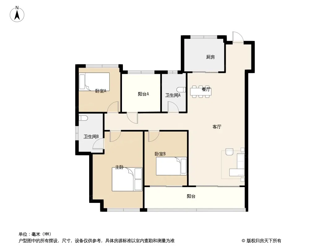 户型齐全,主打主卧带卫,卧室带阳台四居
