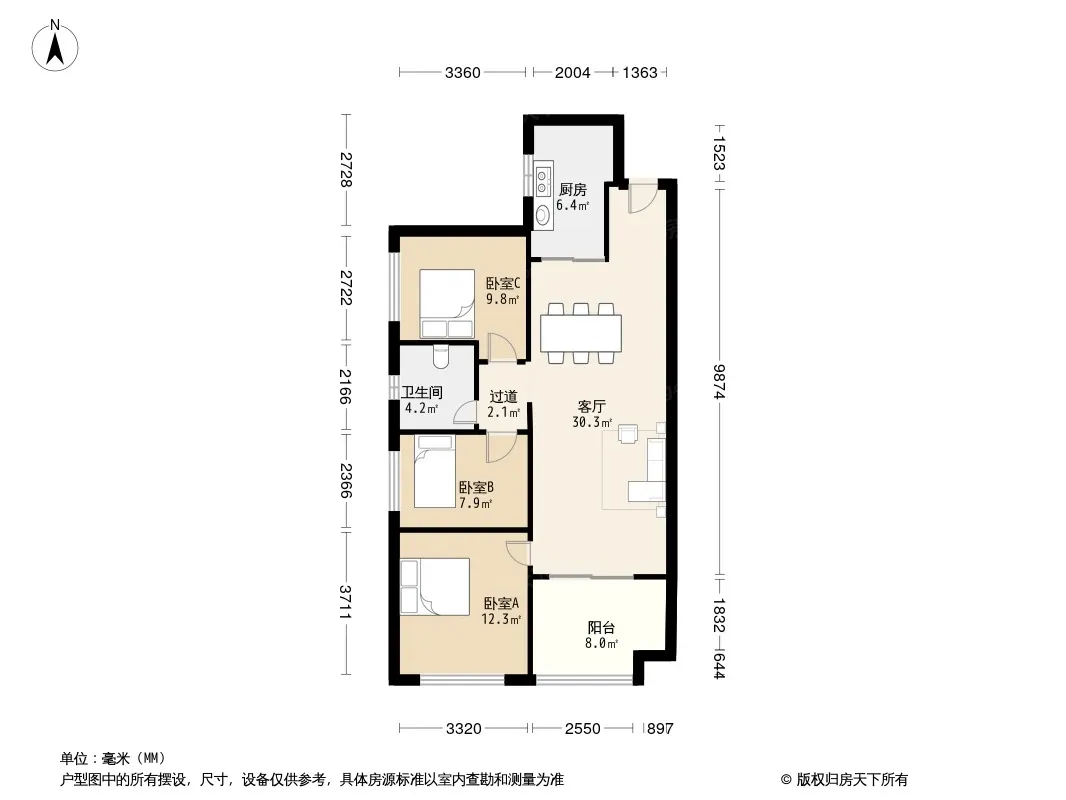 户型齐全,主打户型方正,明卫,明厨,主卧朝南三居