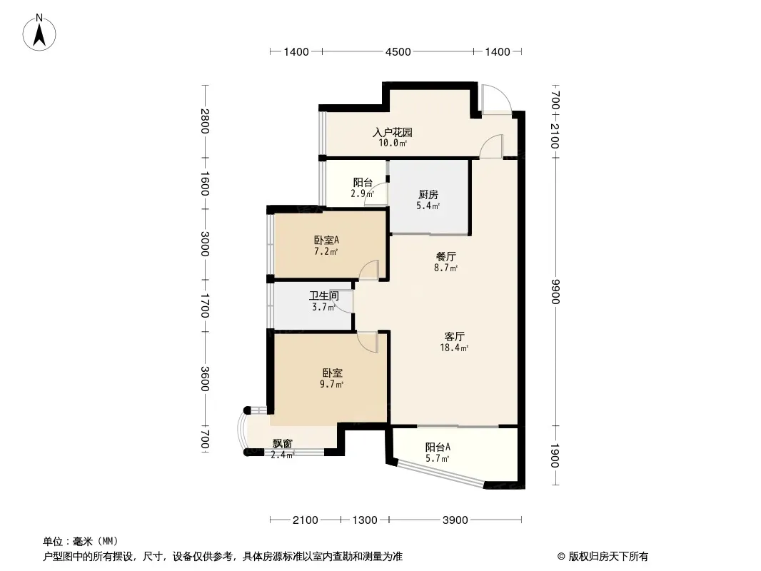 户型齐全,主打入户花园,双阳台三居