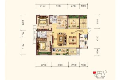 户型齐全,主打户型方正,动静分离三居