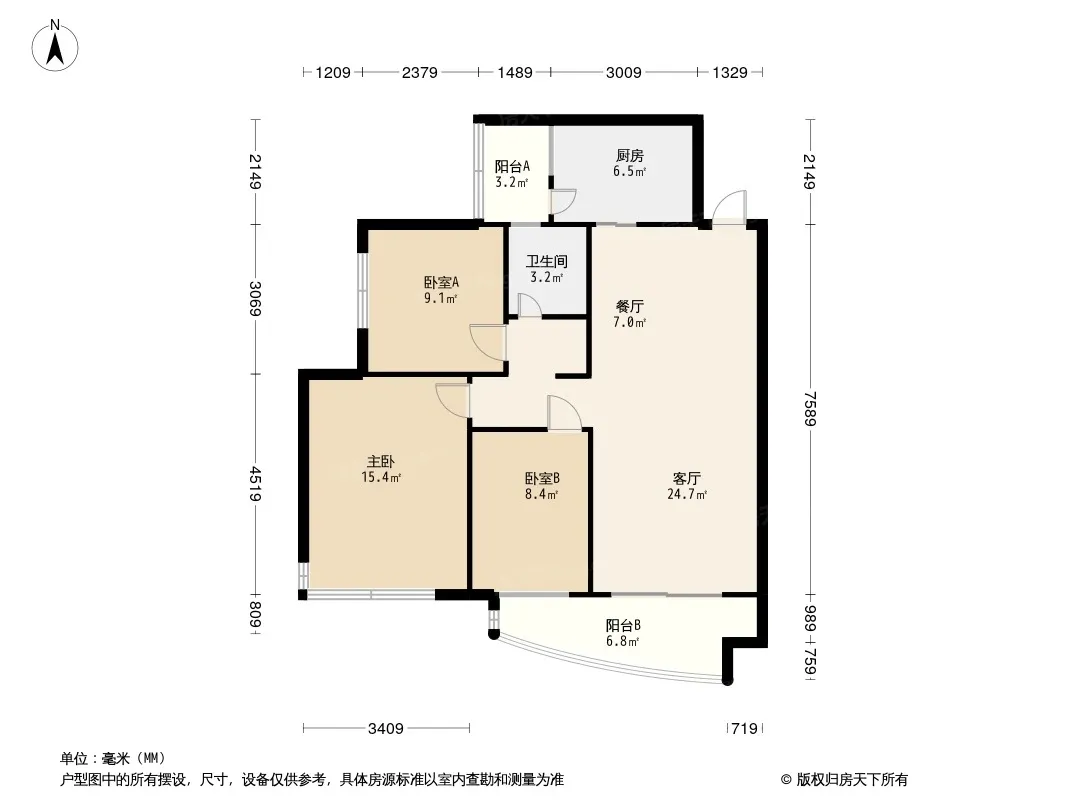 户型齐全,主打客厅朝南,主卧带卫三居