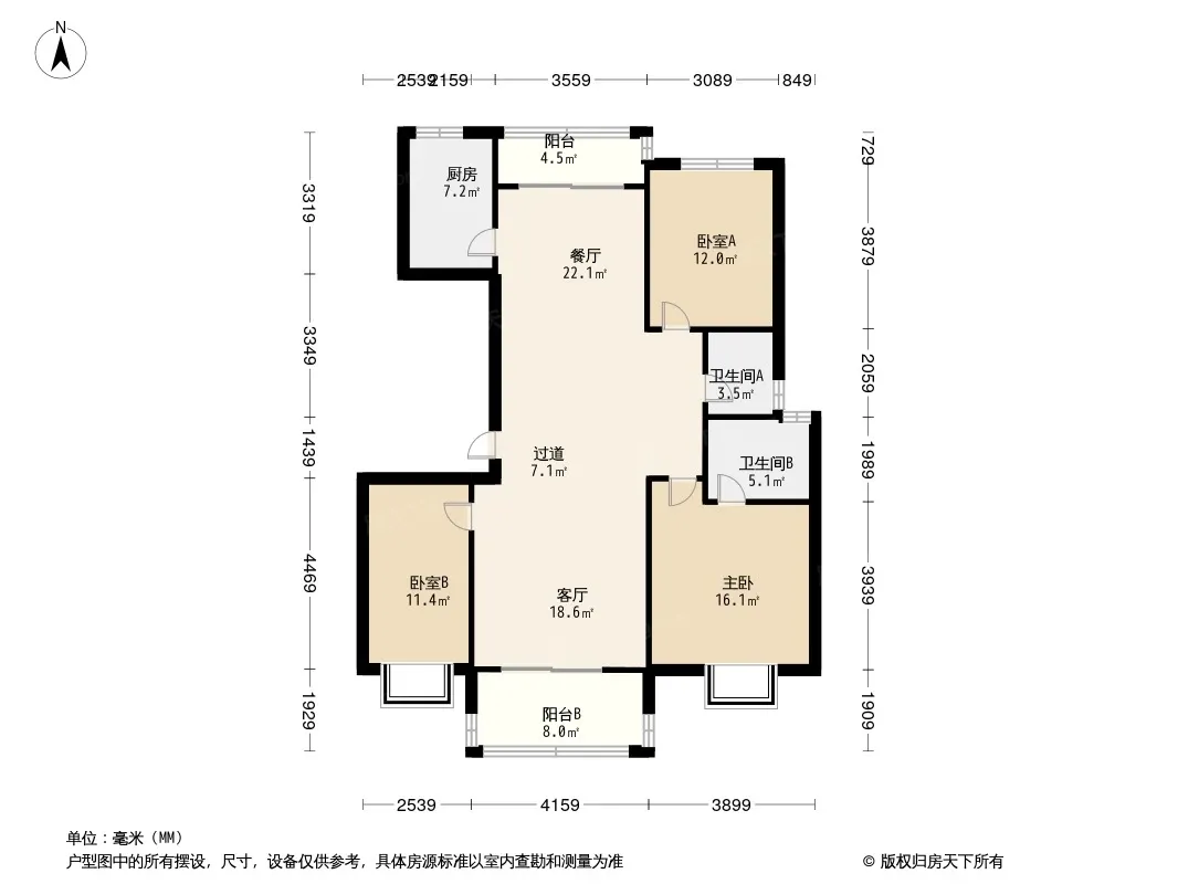 户型齐全,主打南北通透,双阳台三居
