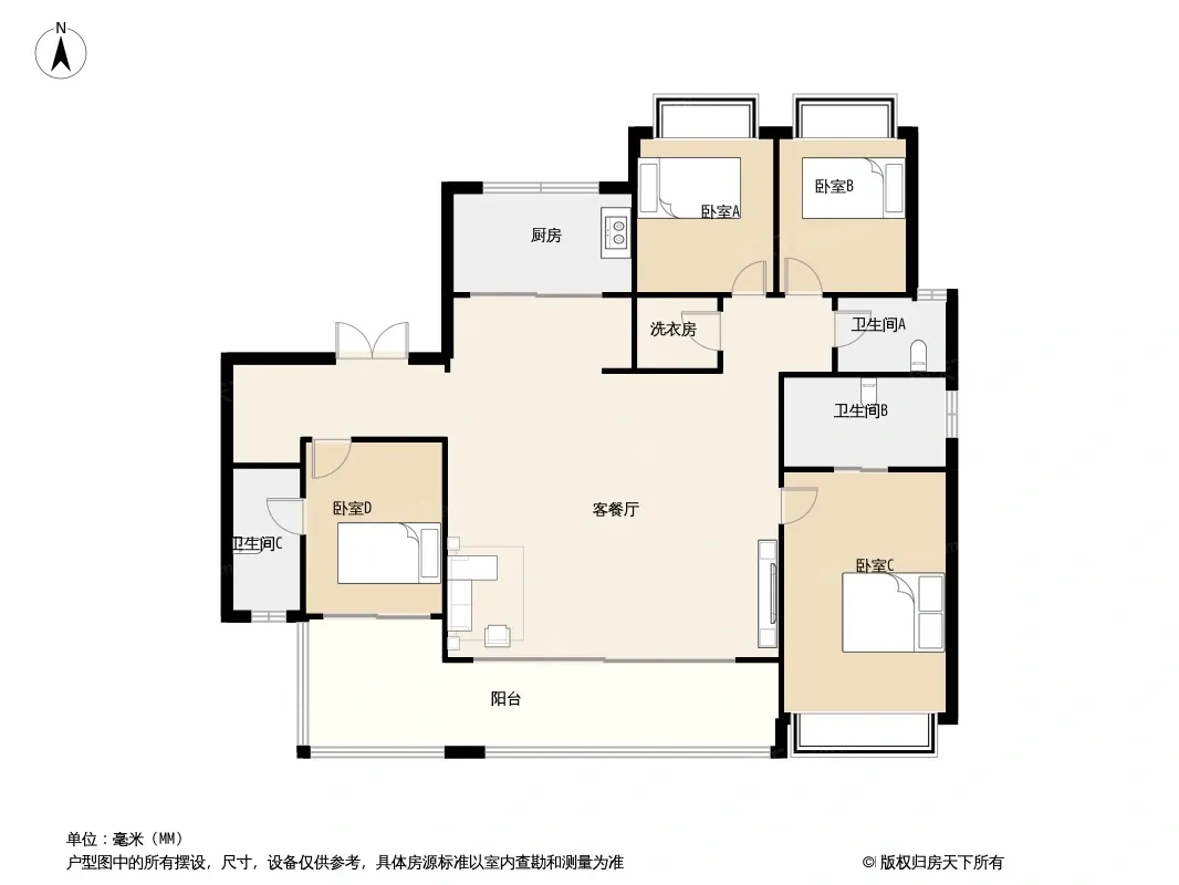 户型齐全,主打卧室带阳台,大面宽阳台四居