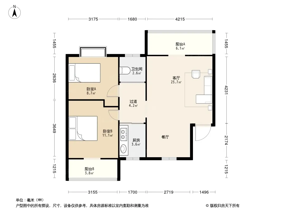 户型齐全,主打明卫,明厨,客厅朝南,全明格局,双阳台,主卧朝南二居