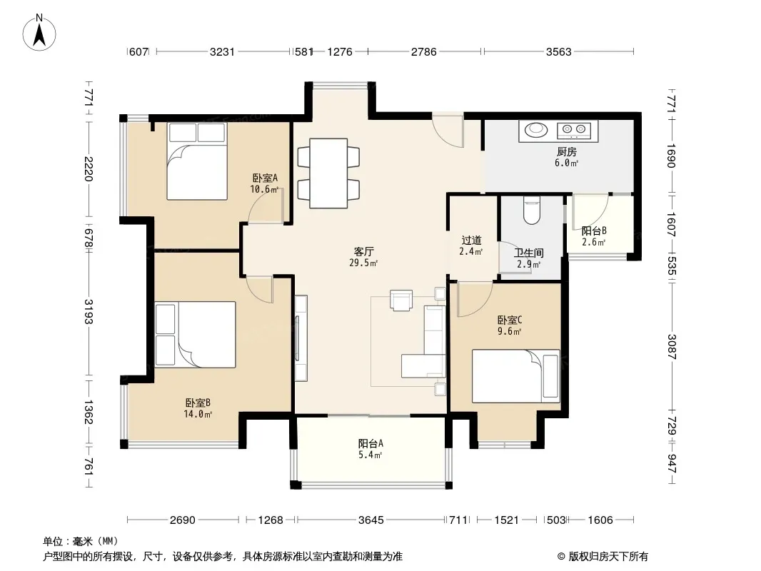 户型齐全,主打客厅朝南,双阳台,双卧朝南,主卧朝南三居