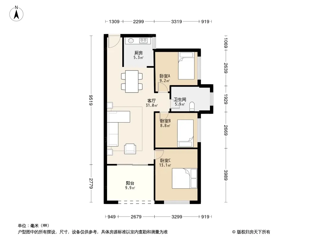 *获取完整户型报告,同时会有免费语音讲解服务