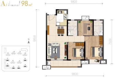 旭辉美的·东樾城户型主要有98平-98平的主卧带卫,卧室带阳台的三居 、128平-143平的主卧朝南,卧室带阳台的四居 。