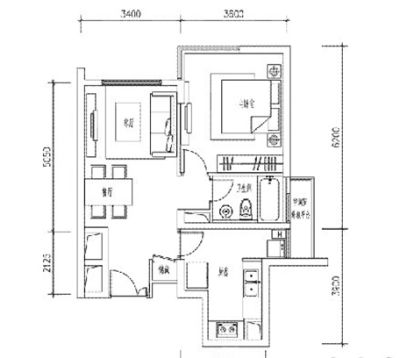 户型齐全,主打明厨,客厅朝南二居